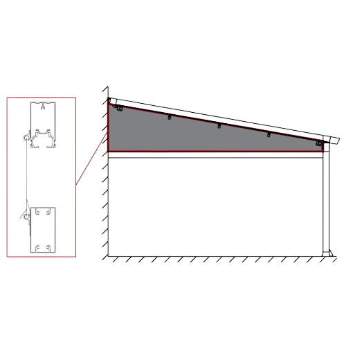 PVC materijal sa već uvučenim bužirom koji se provlači kroz deo od ekstrudiranog aluminijuma koji se fiksira na pergolu.